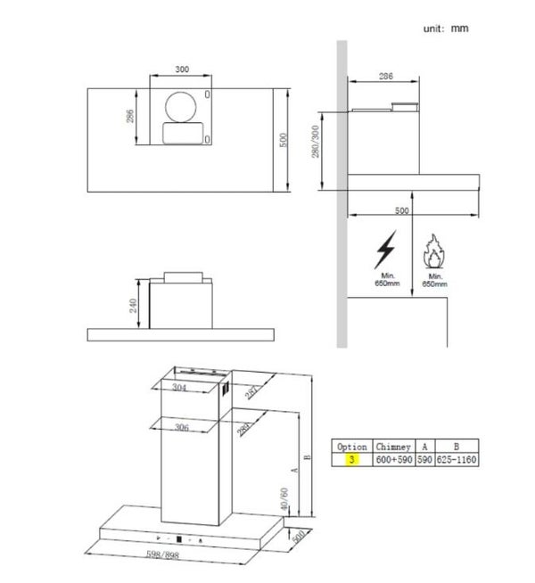Afzuigkap Hanato HIAB6041 Wandschouwkap RVS